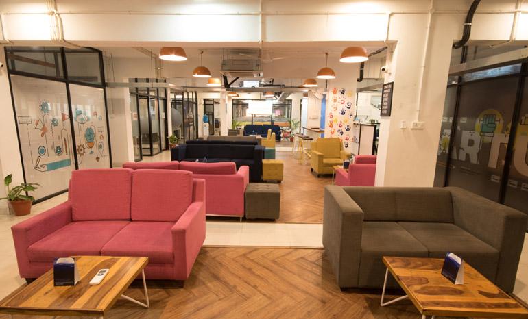 91 Springboard – Indiranagar is a vibrant co-working space with a seating capacity of 845 seats. Located in Indiranagar, the centre is easily accessible through public transport. It comes with a terrace cafeteria, gaming zone and break out area. Apart from a great location, the premise receives plenty of natural light. It is currently occupied by Nanobi Data and Analytics, Denovo Consulting, Alumnus Software and Lancet Software and CERA Sanitaryware.