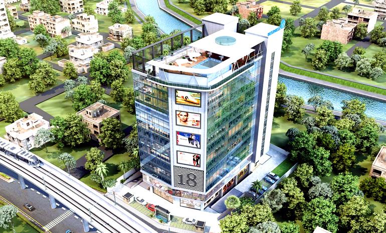 Nestled on Jaipur - Gopalpura Bypass Road, this commercial space rises to 14 floors. It boasts an total built-up area of ~1,66,684 sq.ft. with each floor spanning ~11,000 sq.ft. It is in close proximity to New Atish Market, New Sanganer Road and high-end fashion stores, retail outlets and food junctions. The facility is well connected to Vaishali Nagar, Shyam Nagar, Mansarovar and Sodala. It comes with parking space, cafeteria, gymnasium, business centre, terrace area and salon and spa.