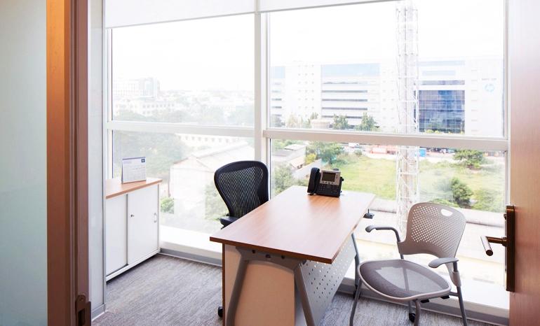 This co-working centre in the central business district - Guindy comes with a capacity of 533 seats. It is situated on the 5th floor of Tamarai Tech Park, overlooking the beautiful green spaces surrounding the area. It is connected to the top IT localities of the city with good public transport connectivity. It is surrounded by IT companies, restaurants, malls, schools and colleges. It comes with a terrace cafeteria and lounge. The present tenants are Learnship Technologies, Greentuple Consulting, LADERA Technology, Trigslog India, International Financial Services, Lyncspace Software Services, Innovnix Technologies, Vega Intellisoft, Touchmark Descience, Sing Swee Bee Gases India, Ascent Engineers & Infrastructures India, and Segula Technologies.