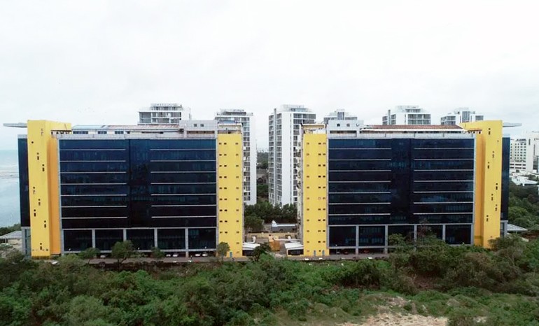 TVH Beliciaa Tower is developed by True Value Homes (TVH) Group and located in MRC Nagar. It includes office spaces, business centres, dining facilities etc. This is an exceptional property that stands high overlooking the Bay of Bengal with beautiful views and easy connectivity. Spread across 3,96,000 sq.ft., it houses 2 towers with 11 floors each, the typical floor plate being 19,800 sq.ft. and offers 1 basement level for car parking. This standalone building is completely surrounded by water, equipped with modern amenities and backed with a good infrastructure. The property is surrounded by hotels, bus stops and residential areas. Some of the occupants are Vodafone South Ltd., CRISIL Ltd and others.